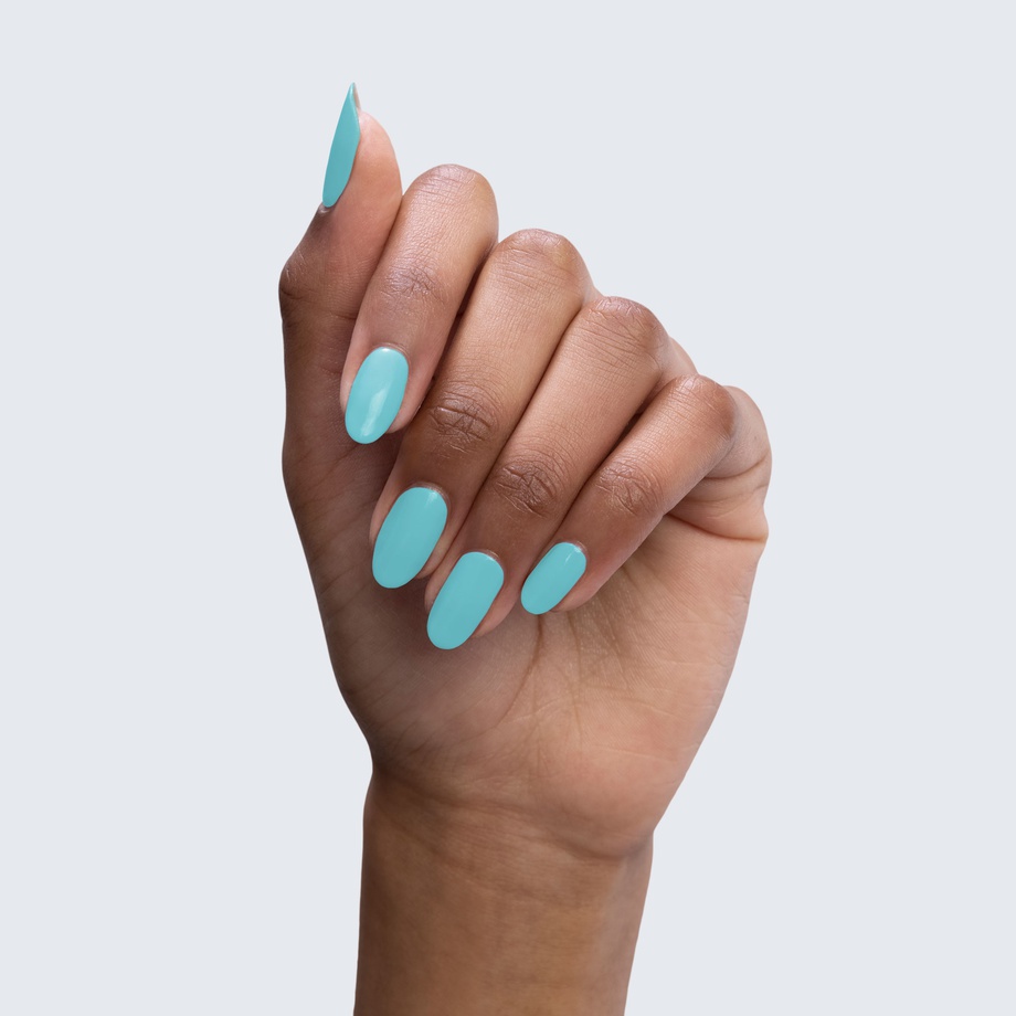 You’ll be glad you took the plunge with this robin’s egg blue polish.